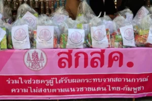 สกสค. เยี่ยมศูนย์พักพิงชั่วคราวจังหวัดอุบลราชธานี 2 แห่ง มอบถุงยังชีพและจัดสรรงบเยียวยาครูจากสถานการณ์ความไม่สงบ