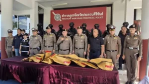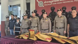 พล.ต.ต.อาทร ชิ้นทอง ผบก.ภ.จว.ประจวบคีรีขันธ์ พ.ต.อ.เฉลิมวุฒิ วงษ์เวียงจันทร์ พ.ต.อ.ภาคภูมิ ให้ใย รอง ผบก.ก.จว.ประจวบคีรีขันธ์.พ.ต.อ.พงษ์ศิริ เก่งนอก รอง ผบก.สส.ภ.7 พ.ต.อ.สทธิพงษ์ อ่อนลออ ผกก.สืบสวน 3 บก.สส.ภ 7 พ.ต.อ.จอม