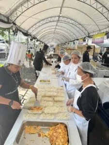 นอกจากบทบาทการทำอาหารแล้ว ท่านประธานสภาสังคมสงเคราะห์ฯ ยังได้พูดคุยให้กำลังใจเหล่าเชฟจิตอาสาที่เดินทางมาจากภาคอีสานและส่วนกลาง โดยชื่นชมในความเสียสละที่มาปฏิบัติงานเพื่อส่วนรวม
