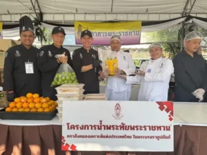 คุณเยาวมาลย์ วัชระเรืองศรี กรรมการอำนวยการ และประธานดำเนินงานวันสำคัญและกิจกรรมพิเศษ ที่ได้ร่วมสนับสนุน ส้มสายน้ำผึ้ง จำนวน 300 ลูก เพื่อนำมาแจกจ่ายควบคู่กับอาหารปรุงสุก