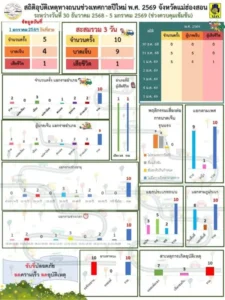 เมื่อวันที่ 2 มกราคม 2569 ศูนย์อำนวยการความปลอดภัยทางถนนจังหวัดแม่ฮ่องสอน รายงานข้อมูลอุบัติเหตุทางถนนช่วงควบคุมเข้มข้น ช่วงเทศกาลปีใหม่ พ.ศ.2569 ระหว่างวันที่ 30 ธ.ค. 68 ถึง 5 ม.ค. 69 ดังนี้ ประจำวันที่ 1 มกราคม 2569 (วันที่ 3 ของช่วงควบคุมเข้มข้น) อุบัติเหตุ จำนวน 5 ครั้ง บาดเจ็บ จำนวน 4 ราย เสียชีวิต จำนวน 1 ราย สถิติสะสม 3 วัน ( 30 ธ.ค. 68 ถึง 5 ม.ค. 69) อุบัติเหตุ จำนวน 10 ครั้ง บาดเจ็บ จำนวน 9 ราย (ช 8 ญ1 ) เสียชีวิต จำนวน 1 ราย (ช)