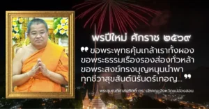 …เนื่องในโอกาสดิถีปีใหม่ พุทธศักราช 2569 ขออาราธนาคุณพระศรีรัตนตรัย หมายมีคุณพระพุทธ คุณพระธรรม คุณพระสงฆ์ และสิ่งศักดิ์สิทธิ์ทั้งหลายบรรดามี ในสากลโลกที่ท่านทั้งหลาย เคารพ กราบไหว้ นับถือ จงมาปกป้อง คุ้มครอง ป้องกัน ให้ท่านทั้งหลาย เป็นผู้ที่ปราศจากทุกข์โศกโรคภัยห่างไกลจากอันตรายทั้งหลาย เจริญด้วยอายุ วรรณะ สุขะ พละ ปฏิภาณ ธนสารสมบัติ ธรรมสารสมบัติ เจริญด้วยลาภ ยศ สรรเสริญ สุข พร้อมทั้งตำแหน่งหน้าที่การงาน คิดหวังสิ่งใดให้สมหวังดังปรารถนา จงทุกสิ่งทุกประการ…