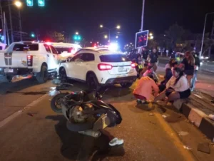อุบัติเหตุรถชนกันจำนวนหลายคันมีผู้ได้รับบาดเจ็บจำนวนหลายราย จุดเกิดเหตุบริเวณแยกศรีชุมสายนอก ถนนซุปเปอร์ไฮเวย์ลำปาง-งาว ต.พระบาท อ.เมือง จ.ลำปาง