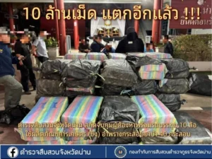 ตำรวจภูธรจังหวัดน่าน ภายใต้การอำนวยการของ พล.ต.ต.ดเรศ กัลยา ผู้บังคับการตำรวจภูธรจังหวัดน่าน และพิสูจน์หลักฐานจังหวัดน่านได้ร่วมตรวจสอบของกลางยาเสพติดรายใหญ่ ณ ลานหน้าอาคารกองบังคับการตำรวจภูธรจังหวัดน่าน ภายหลังเจ้าหน้าที่ตำรวจ กองกำกับการสืบสวนตำรวจภูธรจังหวัดน่าน สามารถสกัดจับกุมขบวนการลักลอบลำเลียงยาเสพติดรายสำคัญ ตรวจยึด ยาบ้าจำนวนกว่า 10 ล้านเม็ด ในพื้นที่อำเภอเมืองน่าน