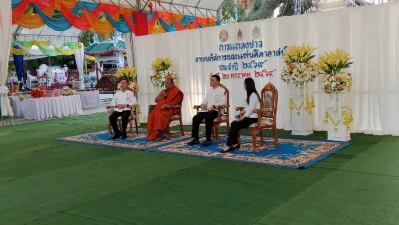 ที่บริเวณหน้าพระวิหารหลวง วัดพระแท่นศิลาอาสน์ พระอารามหลวง อ.ลับแล จ.อุตรดิตถ์ พระวินัยสาทร เจ้าคณะจ.อุตรดิตถ์ (ธ) เจ้าอาวาสวัดพระแท่นศิลาอาสน์ พระอารามหลวง ประธานฝ่ายสงฆ์ ร่วมกับ นายสันติ รังษิรุจิ ผวจ.อุตรดิตถ์ ประธานฝ่ายฆราวาส พร้อมด้วย นายสุรพันธ์ เจริญทรัพย์ วัฒนธรรมจังหวัดฯร่วมกันแถลงข่าวการจัดงานนมัสการพระแท่นศิลาอาสน์ ประจำปี พ.ศ. 2569