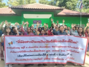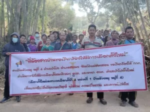 การมารวมตัวของชาวบ้าน เพื่อเรียกร้องให้หน่วยงานที่เกี่ยวข้อง ได้มีการเลือกตั้งใหม่ จึงจะเป็นการแสดงออกถึงความถูกต้องในการออกมาใช้สิทธิ์ของชาวบ้าน ใน เขตเลือกตั้งที่ 4 หน่วยเลือกตั้งที่ 1 บ้านห้วยหมู ต.ป่าโปง อ.สบเมย จ.แม่ฮ่องสอน เพื่อความเป็นธรรมสำหรับผู้มีสิทธิ์ในการเลือกตั้งอย่างแท้จริง ขอให้มีการเลือกตั้งใหม่
