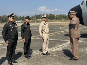วันที่ 26 มกราคม 2569 เวลา 09.30 น. ที่ท่าอากาศยานแม่ฮ่องสอน อำเภอเมืองแม่ฮ่องสอน จังหวัดแม่ฮ่องสอน นายพลากร สุวรรณรัฐ องคมนตรี ในฐานะประธานอนุกรรมการติดตามและขับเคลื่อนโครงการอันเนื่องมาจากพระราชดำริในพื้นที่ภาคเหนือ พร้อมด้วยคณะฯ เดินทางมาปฏิบัติราชการเพื่อติดตามและขับเคลื่อนโครงการอันเนื่องมาจากพระราชดำริในพื้นที่ อำเภอเมืองแม่ฮ่องสอน ระหว่างวันที่ 26 – 27 มกราคม 2569 โดยมีนายวิบูรณ์ แววบัณฑิต ผู้ว่าราชการจังหวัดแม่ฮ่องสอน พร้อมด้วยหัวหน้าส่วนราชการ ข้าราชการ และเจ้าหน้าที่ที่เกี่ยวข้องร่วมให้การต้อนรับ
