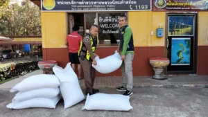 มุกดาหาร ตำรวจทางหลวงสนธิกำลังตรวจยึดข้าวเหนียวดำรวม 90 กระสอบลักลอบนำเข้า