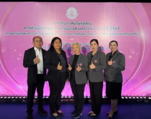 ในการนี้ นางสาวจันทนา แสงสุ่ม ผู้อำนวยการกลุ่ม ช.พ.ค. และนางจินตนา โมทะจิตร ผู้อำนวยการกลุ่ม ช.พ.ส. พร้อมด้วยพนักงานเจ้าหน้าที่ สกสค. ร่วมงานในครั้งนี้ เมื่อวันอังคารที่ 3 กุมภาพันธ์ 2569 ณ ห้องแกรนด์ ไดมอนด์ บอลรูม อาคารอิมแพ็ค ฟอรั่ม เมืองทองธานี จังหวัดนนทบุรี