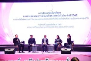 ในการนี้ นางสาวจันทนา แสงสุ่ม ผู้อำนวยการกลุ่ม ช.พ.ค. และนางจินตนา โมทะจิตร ผู้อำนวยการกลุ่ม ช.พ.ส. พร้อมด้วยพนักงานเจ้าหน้าที่ สกสค. ร่วมงานในครั้งนี้ เมื่อวันอังคารที่ 3 กุมภาพันธ์ 2569 ณ ห้องแกรนด์ ไดมอนด์ บอลรูม อาคารอิมแพ็ค ฟอรั่ม เมืองทองธานี จังหวัดนนทบุรี