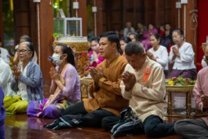 และในช่วงเวลา 22.00 น. พิธีการจุดไฟบูชาฟืนกองโหลเพื่อถวายองค์สัมมาสัมพุทธเจ้า เพื่อถวายเป็นพุทธบูชา