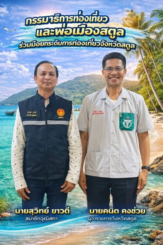 [สตูล – 6 กุมภาพันธ์ 2569] – นายสุวิทย์ ขาวดี สมาชิกวุฒิสภา ในฐานะกรรมาธิการการท่องเที่ยวและกีฬา วุฒิสภา และประธานคณะทำงานส่งเสริมสนับสนุน ฟื้นฟูเศรษฐกิจการท่องเที่ยวภาคใต้ รุกคืบแผนพัฒนาภาคใต้ตอนล่าง เข้าหารือร่วมกับ นายคณิต คงช่วย ผู้ว่าราชการจังหวัดสตูล ชูโมเดล “Cruise Tourism” ยกระดับการท่องเที่ยวทางทะเลระดับโลก