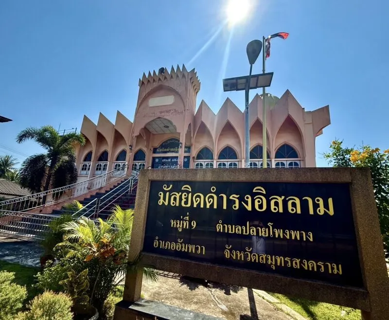 วันพุธที่11กุมภาพันธ์2569ชาวมุสลิมถ้าได้ไปเที่ยวจังหวัดสมุทรสงครามก็แวะได้ที่มัสยิดดำรงอิสลามอยู่ในตำบลปลายโพงพางอําเภออัมพวาและมีร้านอาหารของชาวมุสลิมด้วยหรือจะทำพิธีละหมาดก็มีห้องละหมาดอยู่ในมัสยิด!!น่าสนใจมากเพราะมีมัสยิดแห่งเดียวในจังหวัดสมุทรสงคราม เมืองแม่กลองหรือสมุทรสงครามน่าไปเที่ยวจ้า.!!!#