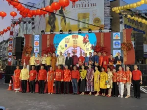 นางสาวเยาวลักษณ์ ตั้งประกิจ นายกสมาคมอุตสาหกรรมท่องเที่ยวจังหวัดมุกดาหาร และ นายคณิต ปัญติโย ประธานสภาอุตสาหกรรมท่องเที่ยวจังหวัดมุกดาหาร พร้อมคณะ ร่วมเปิดงาน “งานตรุษจีนมุก 6” Mukdahan Indochina Fest 2026 ชูอัตลักษณ์อินโดจีน เชื่อมสัมพันธ์ไทย-จีน-ลาว-เวียดนาม กระตุ้นเศรษฐกิจและการท่องเที่ยวอย่างยั่งยืน
