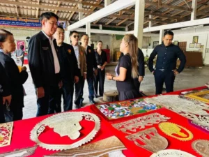 จากนั้นเวลา 13.30 นาฬิกา คณะกรรมาธิการลงพื้นที่เพื่อเยี่ยมชมศูนย์ชุมชนหัตถกรรมที่ผลิตตัวหนังตะลุงแบบดั้งเดิม และเป็นแหล่งผลิตที่มีชื่อเสียงของภูมิปัญญาหนังตะลุง “ลุงอิ่ม” และสวนลุงคมผลไม้ปลอดภัย ซึ่งเป็นแหล่งปลูกกล้วยหอมทองคุณภาพสูงที่ได้รับความนิยมทั้งตลาดในและต่างประเทศ โดยกลุ่มวิสาหกิจชุมชนมีปัญหาอุปสรรคในเรื่องของการตลาดเและการออกแบบบรรจุภัณฑ์