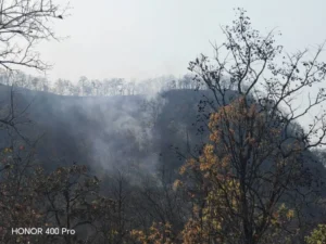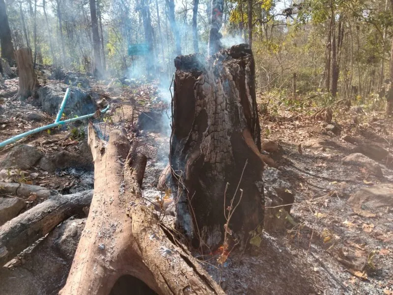 ค่าฝุ่นละอองขนาดเล็กกว่า 2.5 ไมครอน ที่พุ่งเกินค่ามาตรฐานดังกล่าว ส่วนหนึ่งมาจากการลอบเผาป่า และจุดที่เกิดไฟป่า เป็นเทือกเขาสูงชัน ยากต่อการเดินทางปีนป่ายขึ้นไปดับไฟป่าได้โดยง่าย ทำให้หน่วยดับไฟป่าทำได้แค่การทำแนวกันไฟป้องกันไฟป่าลุกลามเข้าสู่บ้านเรือนประชาชน ทั้งนี้การลอบเผาป่าส่วนใหญ่จะเน้นไปที่การเผาในเทือกเขาด้านหลังของตัวหมู่บ้าน กว่าจะรู้ว่าเกิดไฟป่าก็เมื่อเห็นไฟป่าลามจากยอดเขาลงมาสู่ตีนเขาที่ติดกับบ้านเรือนประชาชน ทำให้การดับไฟยากลำบากมากยิ่งขึ้น
