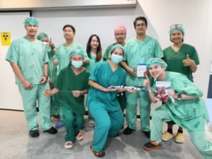 การรักษาครั้งนี้ดำเนินการโดยคณะแพทย์ผู้เชี่ยวชาญด้านการสวนหลอดเลือดหัวใจ ประกอบด้วย นพ.สริราม วิณณ์เศวต, นพ.อิทธิพล ปรีชาเวทยากุล, พญ.วรัญญา หังสพฤกษ์ พร้อมด้วยทีมพยาบาลห้องปฏิบัติการสวนหัวใจและหลอดเลือด โรงพยาบาลหาดใหญ่