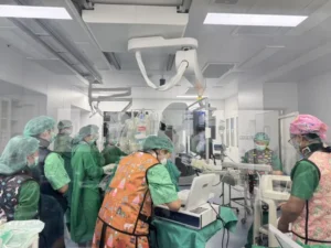 ผู้ป่วยเป็นหญิงอายุ 56 ปี ได้รับการวินิจฉัยว่าเป็นโรคหัวใจเต้นช้าผิดจังหวะชนิดสมบูรณ์ (Complete Heart Block) ซึ่งจำเป็นต้องใส่เครื่องกระตุ้นหัวใจเพื่อช่วยควบคุมจังหวะการเต้นของหัวใจ โดยคณะแพทย์ได้เลือกใช้เครื่องกระตุ้นหัวใจชนิดไร้สาย (Leadless Pacemaker) ซึ่งเป็นเทคโนโลยีใหม่ล่าสุด ทำการใส่ผ่านสายสวนหลอดเลือดเข้าสู่หัวใจโดยตรง