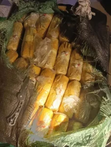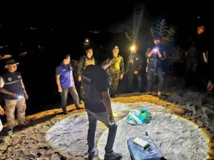 จากการตรวจสอบพื้นที่ พบกระสอบสีดำจำนวน 3 กระสอบ ภายในบรรจุ ยาเสพติดให้โทษประเภทที่ 1 (ยาบ้า) ประมาณกระสอบละ 200,000 เม็ด รวมจำนวนประมาณ 600,000 เม็ด และพบ Happy Water บรรจุในถุงพลาสติกสีขาว จำนวน 100 ซอง เจ้าหน้าที่จึงได้ตรวจยึดไว้เป็นของกลาง พร้อมบันทึกภาพสถานที่เกิดเหตุไว้เป็นหลักฐาน