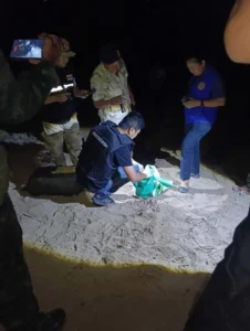 ต่อมาเจ้าหน้าที่พบรถยนต์ต้องสงสัยขับลงไปบริเวณ หาดมโนภิรมย์ และพบกลุ่มบุคคลกำลังลำเลียงกระสอบขึ้นมาจากเรือ เจ้าหน้าที่จึงได้แสดงตัวเข้าตรวจสอบ แต่กลุ่มบุคคลดังกล่าวได้ทิ้งกระสอบและอาศัยความมืดหลบหนีไป พร้อมกับรถยนต์คันดังกล่าวที่ขับหลบหนีเข้าไปในหมู่บ้าน