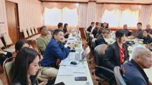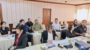 นายอภิชัย เกื้อก่อบุญ รองปลัดองค์การบริหารส่วนจังหวัดสงขลา รักษาราชการแทน ผู้อำนวยการกองส่งเสริมการเกษตร , หัวหน้าส่วนราชการ เจ้าหน้าที่ และกลุ่มเกษตรกรผู้ปลูกมะพร้าวน้ำหอม ร่วมประชุมฯ