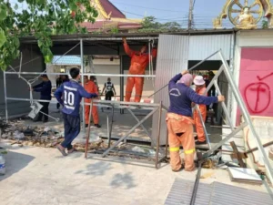 นายอดุล ศิริมันต์ หัวหน้าฝ่ายป้องกันและบรรเทาสาธารณภัยเทศบาลเมืองมุกดาหาร เปิดเผยว่า วันนี้ดำเนินการรื้อร้านค้าที่ริมถนนสำราญชายโขง ตลาดอินโดจีน อีก 2-3 วันคงจะโล่ง มีร้านค้าที่ให้ความร่วมมือ ฝากประชาสัมพันธ์ ร้านใดรอวันเวลาที่จะรื้อไม่ต้องรอ ในวันศุกร์จะมีการประชุมร้านค้า และในวันจันทร์ที่ 30 จะมีการจับสลากแบ่งล๊อคชั้นใต้ดิน เหลือเวลาไม่กี่วันเพื่อความสะดวกรวดเร็ว ให้ทางร้านค้าพิจารณาวางแผนเก็บสินค้าออกจากร้านค้าของท่านไปเก็บไว้ที่บ้าน เพื่อทำการรื้อร้านค้าได้เลยไม่ต้องรอ ถ้าจับสลากได้ล๊อคก็สามารถนำสินค้าเข้าได้เลย เพื่อความรวดเร็ว ร้านค้าสินค้าของท่านต้องรื้อเองเก็บเอง ฝากประชาสัมพันธ์ให้ทราบโดยทั่วกัน