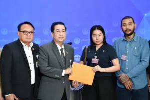 วันที่ 30 มีนาคม 2569 11.00 นาฬิกา ณ บริเวณห้องโถง ชั้น 1 อาคารรัฐสภา (สว.) คณะกรรมาธิการการแรงงาน วุฒิสภา นำโดย นายชินโชติ แสงสังข์ รองประธานคณะกรรมาธิการฯ และประธานคณะอนุกรรมาธิการด้านการประกันสังคม รับหนังสือจากนางสาวพิราวรรณ พงศ์พันธ์ ตัวแทนบริษัท นำคนต่างด้าวมาทำงานในประเทศ เอ เอ อารากัน จำกัด เพื่อขอให้ตรวจสอบข้อเท็จจริงกรณีการแอบอ้างสถานะและการดำเนินการที่อาจเกี่ยวข้องกับการแสวงหาประโยชน์โดยมิชอบ สืบเนื่องจากปรากฏข้อมูลในสื่อสังคมออนไลน์ พบข้อสงสัยว่ามีบุคคลรายหนึ่งแอบอ้างว่าเป็นที่ปรึกษาคณะอนุกรรมาธิการด้านการประกันสังคม และยังเป็นที่ปรึกษาสมาชิกวุฒิสภา โดยมีการแต่งกายด้วยเสื้อที่มี Logo วุฒิสภา มีพฤติกรรมจัดทำบัตรลักษณะคล้ายบัตรแสดงตนให้แก่แรงงานต่างด้าวเพื่อใช้สวมใส่ติดตัว และยังไม่ปรากฏชัดเจนว่าการกระทำดังกล่าวมีอำนาจตามกฎหมายหรือได้รับอนุญาตจากหน่วยงานที่เกี่ยวข้องหรือไม่ นอกจากนี้ยังมีคลิปวิดีโอเผยแพร่ในสื่อสังคมออนไลน์ มีลักษณะเป็นการสนทนาระหว่างบุคคลดังกล่าวกับแรงงานต่างด้าว โดยมีพฤติการณ์ที่อาจถูกตีความได้ว่าเกี่ยวข้องกับการเรียกรับเงินหรือการแสวงหาผลประโยชน์จากแรงงาน ซึ่งเรื่องดังกล่าวจำเป็นต้องได้รับการตรวจสอบจากหน่วยงานที่มีอำนาจหน้าที่ เพื่อความชัดเจน โปร่งใสและเป็นธรรมต่อทุกฝ่าย จึงขอให้คณะกรรมาธิการฯ ตรวจสอบข้อเท็จจริงในเรื่องดังกล่าว