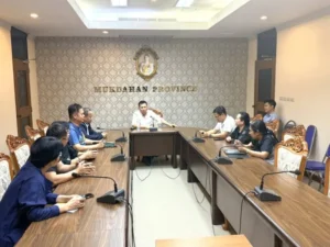 วันที่ 2 เมษายน 2569 เวลา 21.30 น.นายวรญาณ บุญณราช ผู้ว่าราชการจังหวัดมุกดาหารได้เรียกคณะกรรมการพิจารณาเร่งรัดการดำเนินโครงการซ่อมแซมและปรับปรุงตลาดอินโดจีน และตัวแทนผู้รับจ้าง
