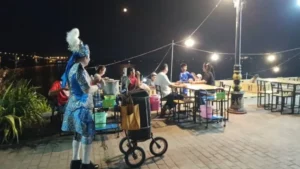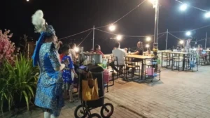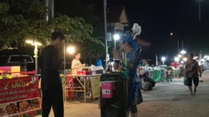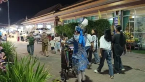 และได้พบเห็นลุง แต่งกายชุดลิเก ทาหน้าขาว แก้มแดง เดินร้องลิเกเสียงหวาน พร้อมด้วยรถเข็นลำโพงและตระกร้าใส่เงิน เดินเชิญชวนประชาชนที่เดินผ่านไปมาให้มาชื้อหาอาหารตามร้านค้าต่าง ๆ ส่วนลีลาการร้องลิเกไม่ธรรมดาเลยทีเดียว เดินผ่านร้านค้าใดก็จะร้องกล่าวทักทายพ่อค้าแม่ค้าขายผลไม้ ขายกับข้าว แถมหยอดคำหวานขอให้ค้าขายรวยๆ ให้มีสุขภาพร่างกายแข็งแรง หลายคนเห็นก็ชอบใจ ให้เงินเป็นค่าตอบแทนกับคำอวยพร 10 บาทบ้าง 20 บาทบ้าง