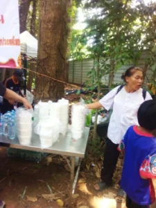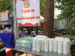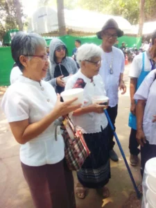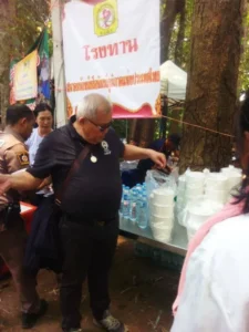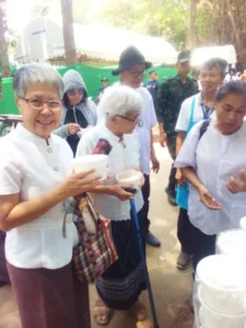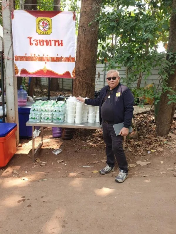 ได้มอบหมายงานให้กรรมการและสมาชิกสมาคมฯ ดำเนินการทำอาหารถวายพระสงฆ์ และทำโรงทานน้ำหวาน และขนมจีนน้ำยา บริการญาติโยมที่มาร่วมงานบุญครั้งนี้
