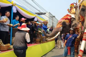 อพท.สุโขทัย เข้าร่วมจัดกิจกรรมงานประเพณีแห่ช้างบวชนาคไทยพวนบ้านหาดเสี้ยว ประจำปี พ.ศ. ๒๕๖๙