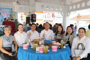 นางสาวเยาวลักษณ์ ตั้งประกิจ นายกสมาคมอุตสาหกรรมท่องเที่ยวจังหวัดมุกดาหาร และ นายคณิต ปัญติโย ประธานสภาอุตสาหกรรมท่องเที่ยวจังหวัดมุกดาหาร พร้อมคณะกรรมการ เข้าร่วมงานสภากาแฟ รวมพลังทุกภาคส่วน ขับเคลื่อนเมืองชายแดน
