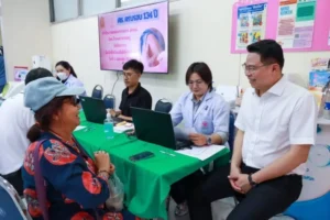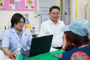 ในการนี้ ดร.พีระพันธ์ เหมะรัต เลขาธิการคณะกรรมการ สกสค. พร้อมด้วยคณะผู้บริหาร สกสค. ได้พบปะ ทักทาย และให้กำลังใจผู้เข้ารับบริการ ท่ามกลางบรรยากาศที่อบอุ่นและเป็นกันเอง โดยมี นายแพทย์ขวัญชัย วิศิษฐานนท์ ผู้อำนวยการโรงพยาบาลครู ให้การต้อนรับ ณ อาคารโรงพยาบาลครู สำนักงานคณะกรรมการ สกสค.