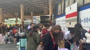 10 04 69 เวลา 10.30 น. ผู้สื่อข่าวรายงาน บรรยากาศการเดินทางในพื้นที่จังหวัดมุกดาหาร ช่วงก่อนเข้าสู่เทศกาลสงกรานต์และเทศกาลปีใหม่ลาว พบว่าที่สถานีขนส่งผู้โดยสารจังหวัดมุกดาหาร อำเภอเมือง จังหวัดมุกดาหาร เป็นไปอย่างคึกคัก มีแรงงานชาว สปป.ลาว ที่เดินทางกลับจากการทำงานในหลายจังหวัดของประเทศไทย ทยอยกลับภูมิลำเนาอย่างต่อเนื่อง เพื่อเดินทางต่อไปยังด่านพรมแดนสะพานมิตรภาพไทย-ลาว แห่งที่ 2 (มุกดาหาร–สะหวันนะเขต)