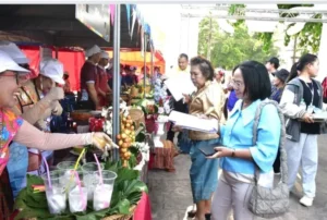 วันที่ 14 เมษายน 2569 — บรรยากาศงานประเพณีสงกรานต์จังหวัดมุกดาหาร วันที่สองยังคงคึกคักอย่างต่อเนื่อง โดยเมื่อเวลา 15.00 น. ณ บริเวณตลาดอินโดจีน นายวรญาณ บุญณราช ผู้ว่าราชการจังหวัดมุกดาหาร ได้เดินทางมาเยี่ยมชมและให้กำลังใจผู้เข้าประกวดในกิจกรรม “การประกวดส้มตำลีลา” ซึ่งเป็นกิจกรรมไฮไลต์ที่ดึงดูดนักท่องเที่ยวและประชาชนเข้าร่วมงานอย่างหนาตา