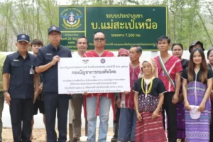 เมื่อวันที่ 24 เมษายน 2569 พ.อ. ราชพล ทองอารีย์ ผบ.นพค.36 สนภ.3 นทพ. จ.แม่ฮ่องสอน ลงพื้นที่ส่งมอบโครงการประจำปีงบประมาณ พ.ศ. 2569 ให้กับประชาชนในพื้นที่อำเภอขุนยวม จ.แม่ฮ่องสอน จำนวน 3 หมู่บ้าน ตามความต้องการของประชาชน เพื่อเป็นของขวัญเนื่องในวันเทศกาลสงกรานต์ โดยส่งมอบงานก่อสร้างลานอเนกประสงค์ ขนาด 15×30 ม. หนา 0.10 ม. ให้ประชาชน บ.ห้วยฟาน ม.5 ต.ขุนยวม อ.ขุนยวม เพื่อให้ประชาชนได้ใช้ในการออกกำลังกาย และกิจกรรมต่างๆ รู้จักใช้เวลาว่างให้เกิดประโยชน์จากโครงการ จำนวน 47 ครัวเรือน ประชากร 213 คน