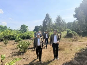 จากนั้น คณะกรรมาธิการได้เยี่ยมชมสวนเกษตรกรรมของเกษตรกรในพื้นที่ชุมชนบ้านทับคริสต์ ตำบลคลองชะอุ่น อำเภอพนม จังหวัดสุราษฎร์ธานี ซึ่งเป็นพื้นที่ได้รับการจัดสรรน้ำจากโครงการอ่างเก็บน้ำบางทรายนวลตามพระราชดำริ โดยเป็นระบบท่อส่งน้ำสู่แปลงเกษตรกรรม และในพื้นที่แปลงเกษตรจะมีสระเก็บน้ำ