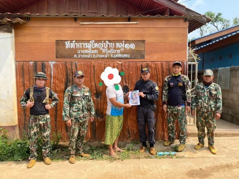 ต่อมา ทางเจ้าหน้าที่ทราบว่าบุคคลในรูปดังกล่าว คือนายวิวรรธน์ (ขอสงวนนามสกุล) เป็นราษฎรบ้านหลุกข้าวหลาม ตำบลปางมะผ้า อำเภอปางมะผ้า จังหวัดแม่ฮ่องสอน และอีกรายคือนายจารึก (ขอสงวนนามสกุล)เป็นราษฎรบ้านหมู่ ๑๑ ตำบลปางมะผ้า อำเภอปางมะผ้า จังหวัดแม่ฮ่องสอน โดยบุคคลทั้ง 2 ราย ถูกผู้ใหญ่บ้านยืนยัน ว่าเป็นราษฎรลูกบ้านของตนเองและกระทำความผิดตามรูปที่โพสลงในโซเชียลเมื่อวันที่ 25 เมษายน 2569 ที่ผ่านมา